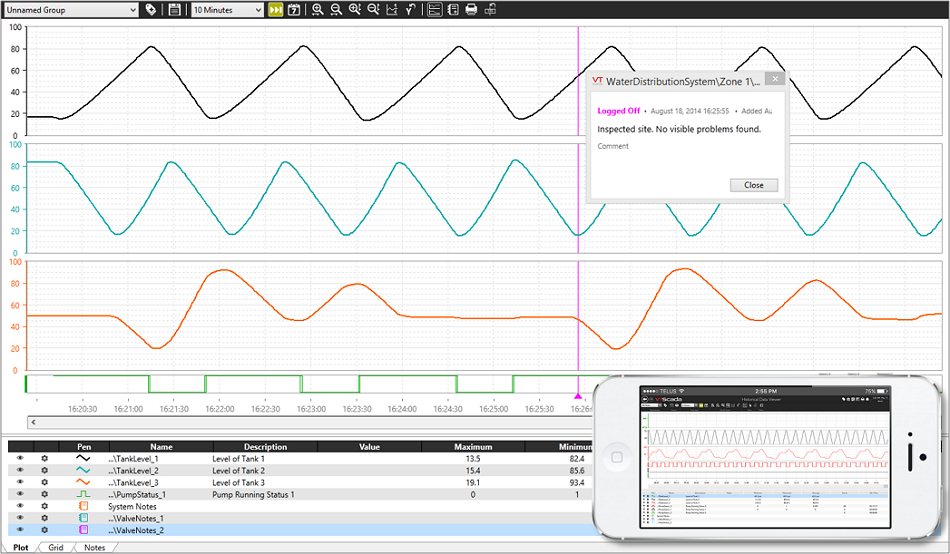 SCADA systems can automatically log run times, levels, alarms, and operator actions.