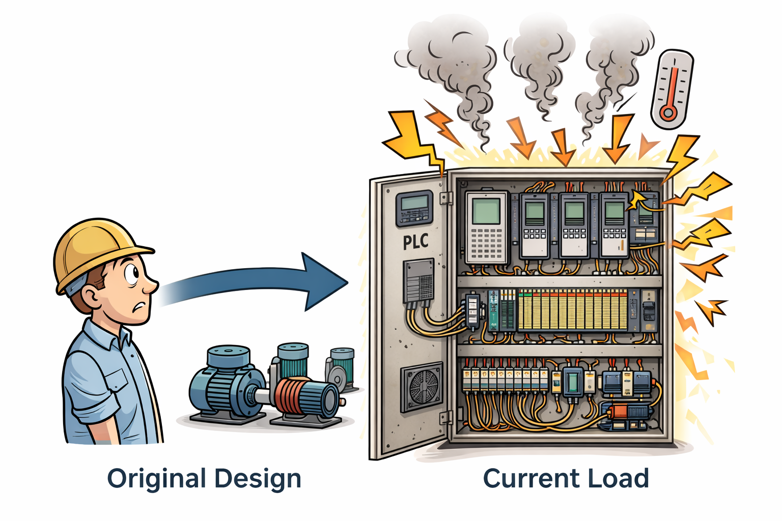 Failures show up as drives faulting under load with no prior history, PLCs locking up after a routine power cycle, communications dropping intermittently and then disappearing entirely, or time drift creating alarms that do not align with what operators see in the field.